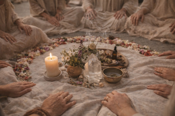 Intimate gatherings for shared presence, ritual, and remembrance, held in small groups, curated slowly, offered seasonally.